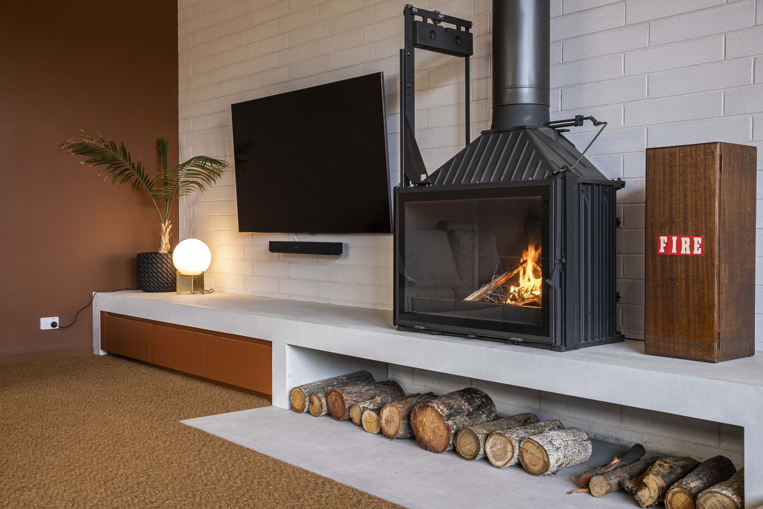 Cheminees Philippe’s original double opening door system is demonstrated to its full advantage with the whole front sliding up for a stunning open fire or revert to a high performance slow combustion heater when the door is closed. Designed and tested to be installed into a masonry fireplace surround, existing fireplace or left freestanding, this beautiful, versatile firebox offers the flexibility to create a multitude of stunning fireplace designs to suit every home.