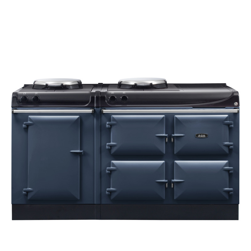 The AGA eR3 Series 160 features two cast-iron ovens – one for baking and roasting, the other for simmering – as well as a useful warming oven, cookware storage space and a state-of-the-art two zone induction hob with a bridging feature.