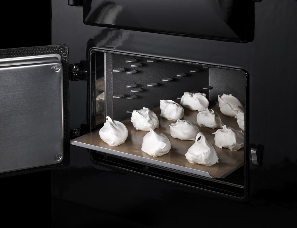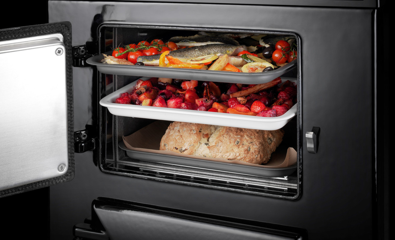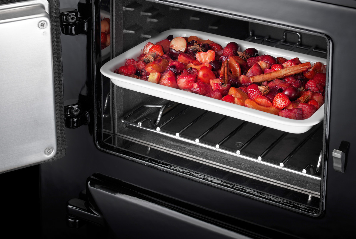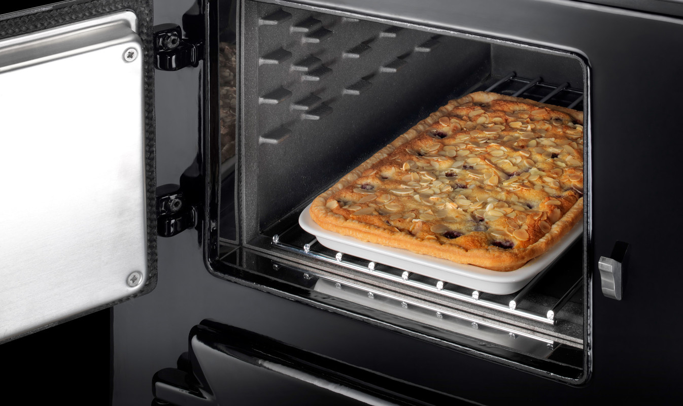 The top oven can be set to roasting, baking or the off setting. The roasting and baking settings can be achieved from cold in around 60 minutes. The lower simmering oven can also be up to full heat in the same time.