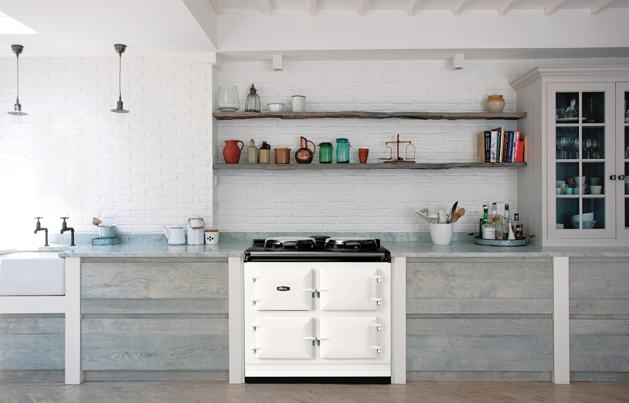 The cast-iron ovens also feature an Altrashell™ coating, which seals the cast-iron and makes them easier to clean. For further ease, the inner door liners can be removed and placed in a dishwasher., Designed and made in the UK, the AGA eR7 100 offers the iconic good looks you’d expect from AGA with enhanced controllability. As part of the Everyday Radiant Heat collection, these cookers are on when you need them and off when you don’t, and, like all AGA cookers, can put gentle heat in the room when you want it.
