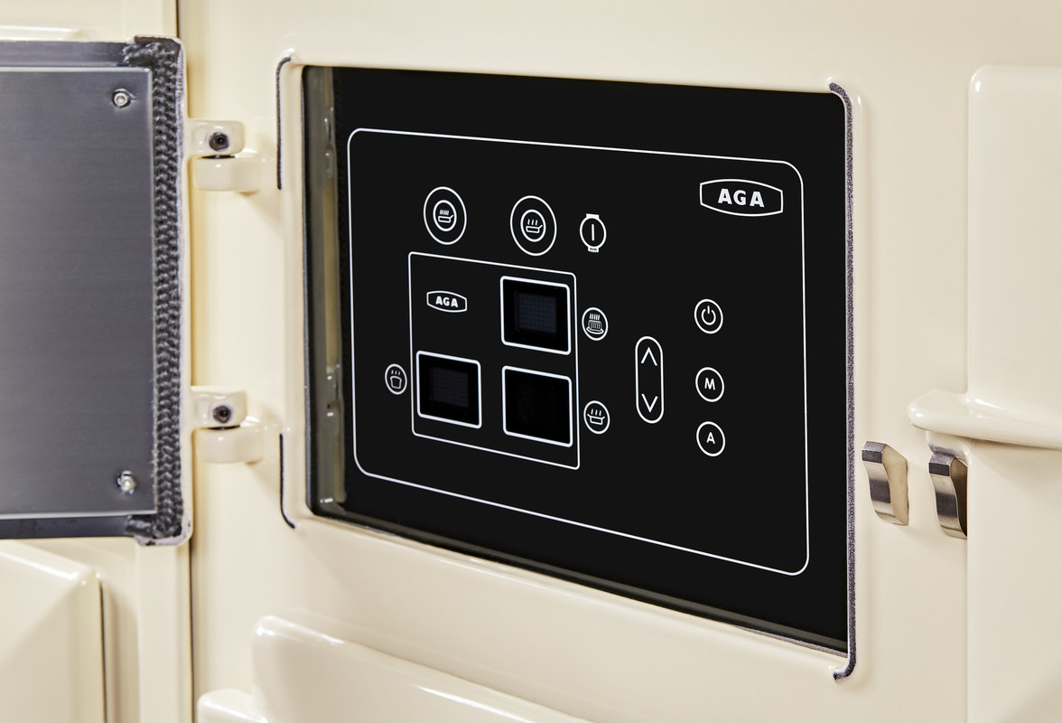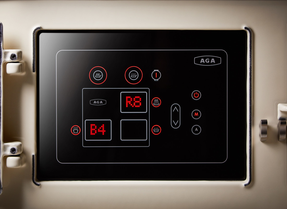The three ovens – for roasting, baking and simmering – and two hotplates on the AGA eR7 100 are controlled by a capacitance touch-screen panel. Hotplates and ovens can be individually controlled, and for optimal control, there are 5 heat settings for the roasting oven and 4 for the baking oven.