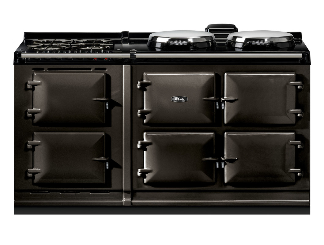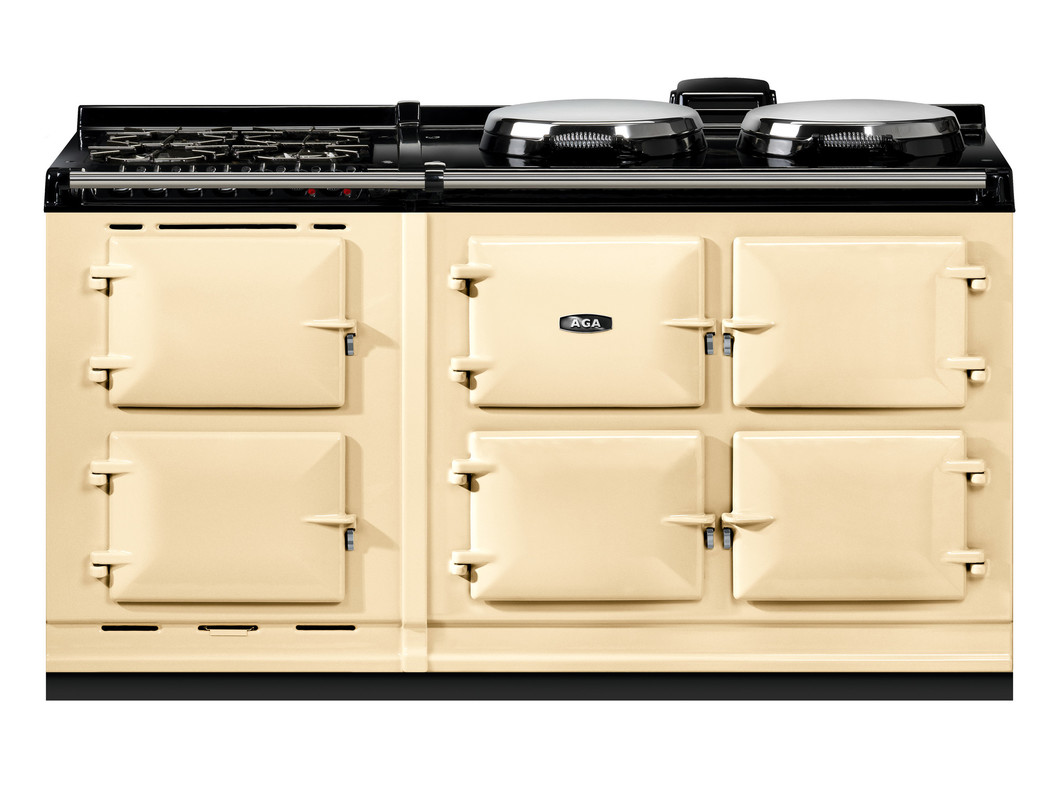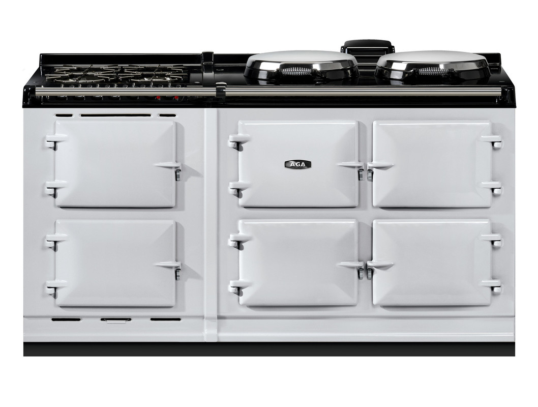 This model has an additional AGA module with a slow cooking oven, featuring an integral grill, and a fan oven. There’s also a 4-burner gas hob for optimal cooking flexibility. As part of the Everyday Radiant Heat collection, these cookers are on when you need them and off when you don’t, and, like all AGA cookers, can put gentle heat in the room when you want it., The AGA eR7 160 offers three cast-iron ovens – for roasting, baking and simmering – and two hotplates which are controlled by a touch-screen control panel. Hotplates and ovens can be individually controlled, and for optimal control, there are 5 heat settings for the roasting oven and 4 for the baking oven.