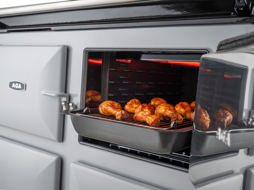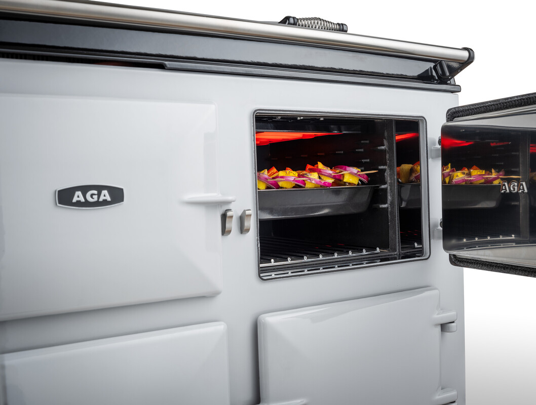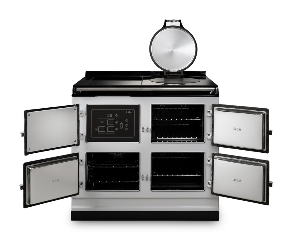 The AGA eR7i 100 offers cast-iron radiant heat cooking combined with innovative technology to provide additional range cooker capabilities. With three large capacity ovens – two cast-iron heat storage radiant ovens – one for roasting and baking and one for long, slow simmering – plus a conventional fan oven, all controlled by a state-of-the-art touch screen, this cooker offers everything a cook could need.
