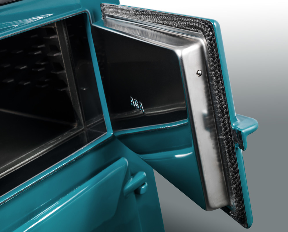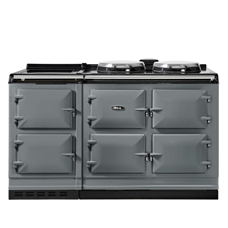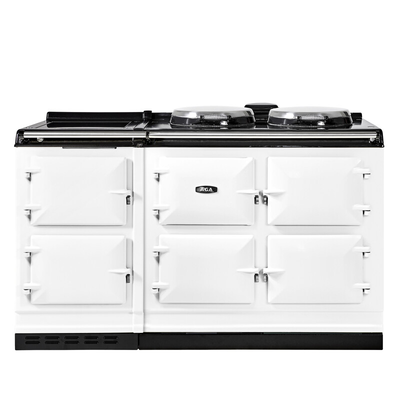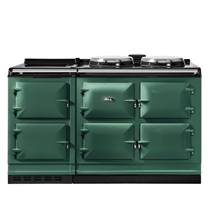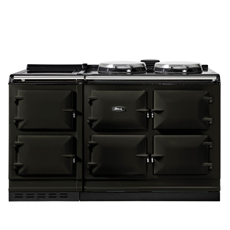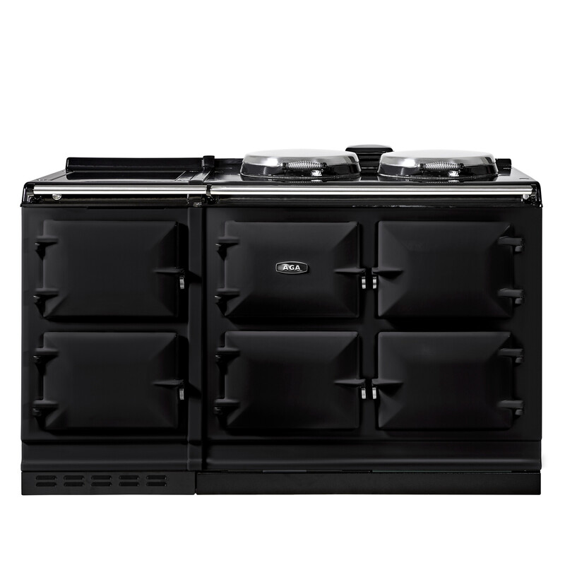 For flexibility and energy saving, the four oven settings include an economy low mode and a high temperature option to provide a boost when you need it. The hotplates heat up in 10 to 12 minutes, so can be switched on only when needed. The cast-iron ovens also feature an Altrashellâ„¢ coating, which seals the cast-iron and makes them easier to clean. The inner door liners can be removed and placed in a dishwasher., The AGA R7 150-5i offers three cast-iron ovens with four different temperature settings as well as additional slow-cooking and warming ovens, two independently controlled hotplates and a single-zone induction hob. As part of the 24/7 Radiant Heat collection, these models are on all the time, keeping the kitchen cosy and are ready to cook the moment you are.