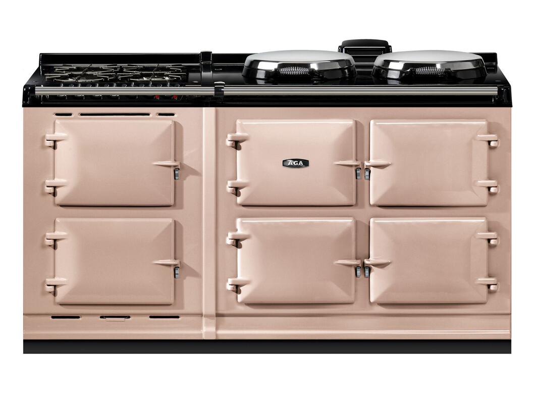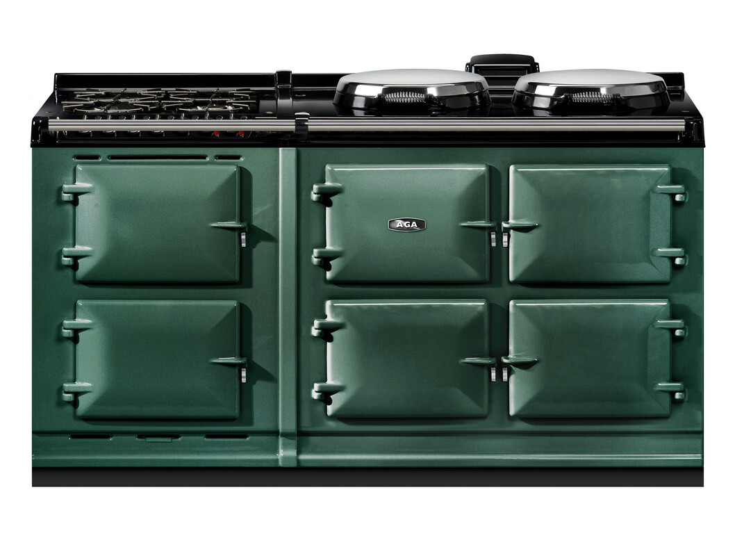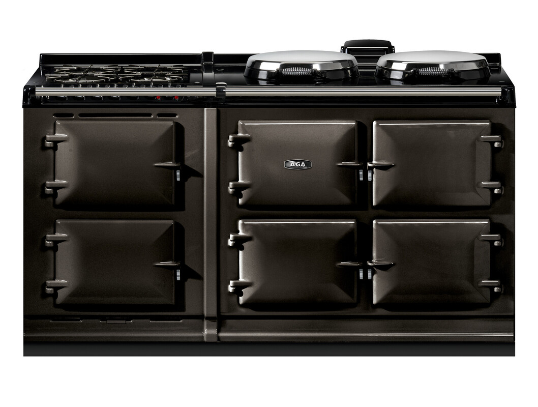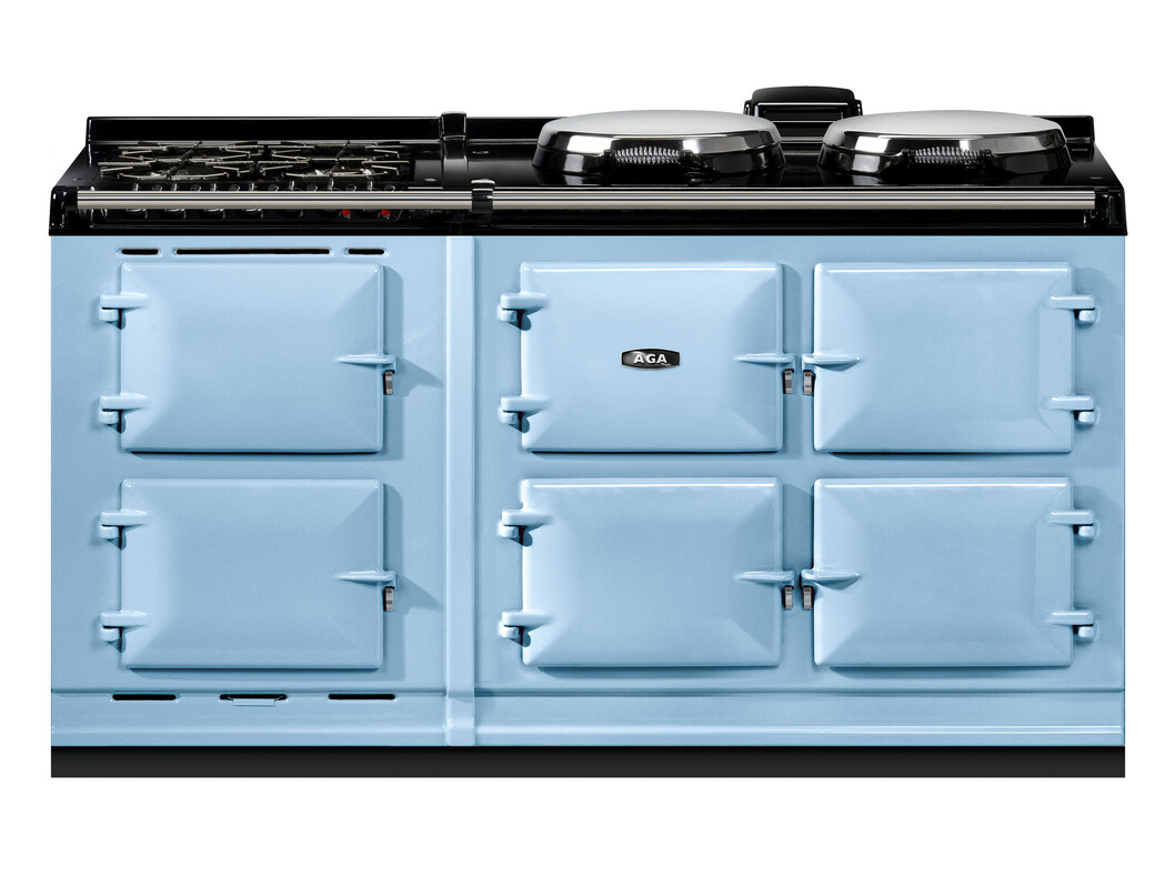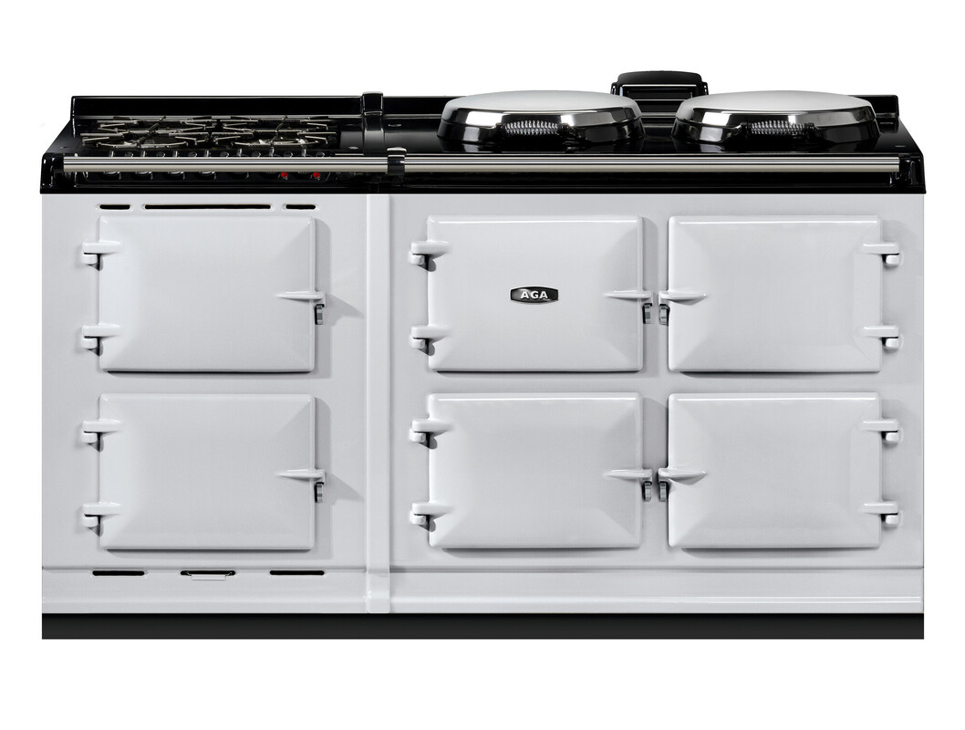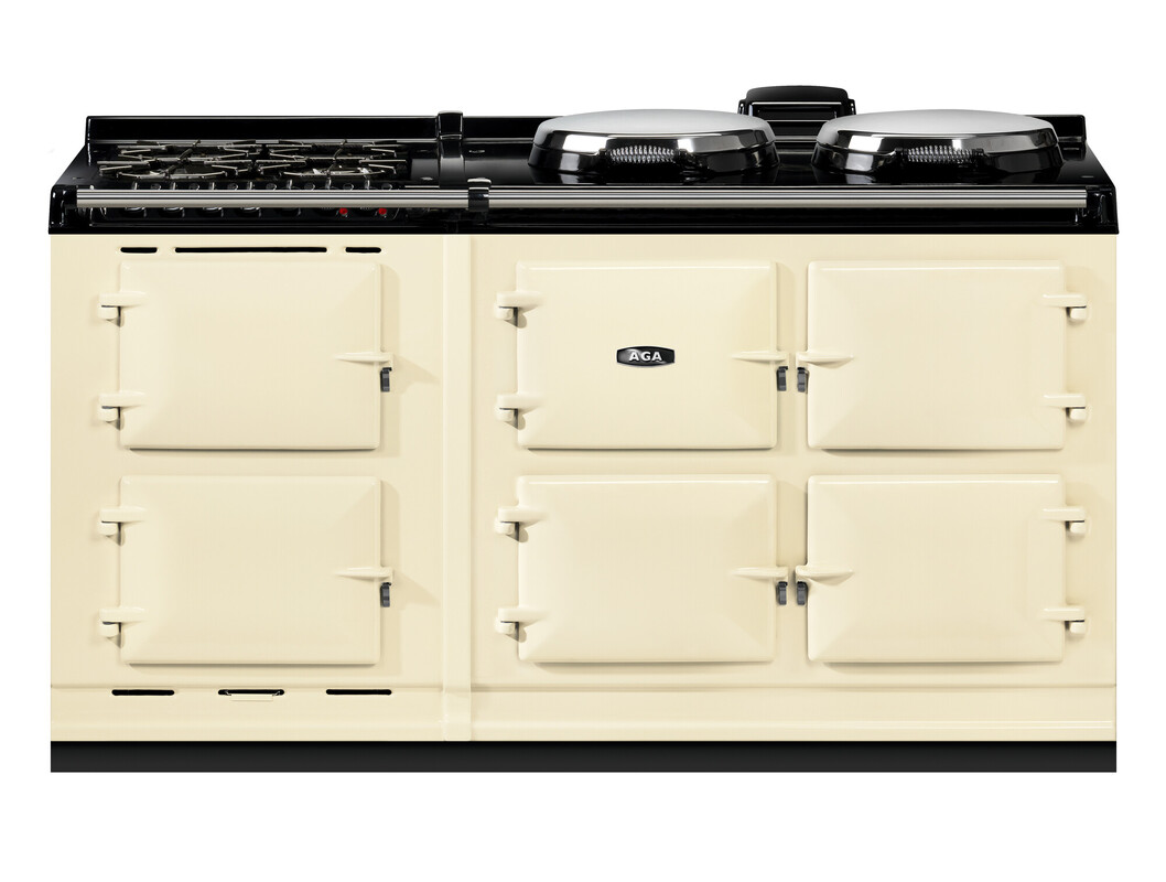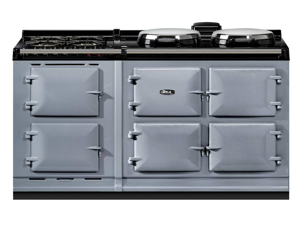 This model offers an additional AGA module with a slow cooking oven, featuring an integral grill, and a fan oven. There’s a 4-burner gas hob for optimal cooking flexibility., The AGA R7 160 features three cast-iron ovens for roasting, baking and simmering. There are four different temperature settings for flexibility and energy saving including an economy low mode and a high temperature option to provide a boost when you need it. In addition the two hotplates can be switched on and off independently of the ovens, and heat up in 10 to 12 minutes.
