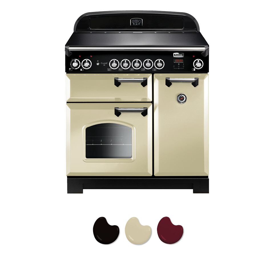 Combining traditional styling with Falcon’s modern cooking technology, the Falcon Classic 90cm Induction Range Cooker offers everything a traditional range cooker should – bevelled doors, arched windows, handy towel rail and a choice of three classic colours – Cranberry, Black or Cream all with a chrome trim. With Falcon’s Classic range, you can choose from a gas cooktop with electric or gas ovens (90cm gas features a main gas and tall electric oven) or all electric with induction cooktop.