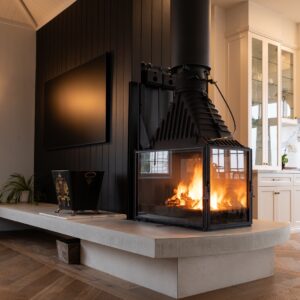 Capture the allure and feel of a campfire in your very own living room, with the stunning Cheminées Philippe Radiante 846 4V Wood Heater offering a refined silhouette and spectacular 360 degree views of the fire. Using state of the art engineering and modelled on their other popular multiview fireplaces, Cheminees Philippe has perfected the design of an innovative luxury four sided view fireplace with excellent natural fireside warmth; you’ll have everyone gathered around.