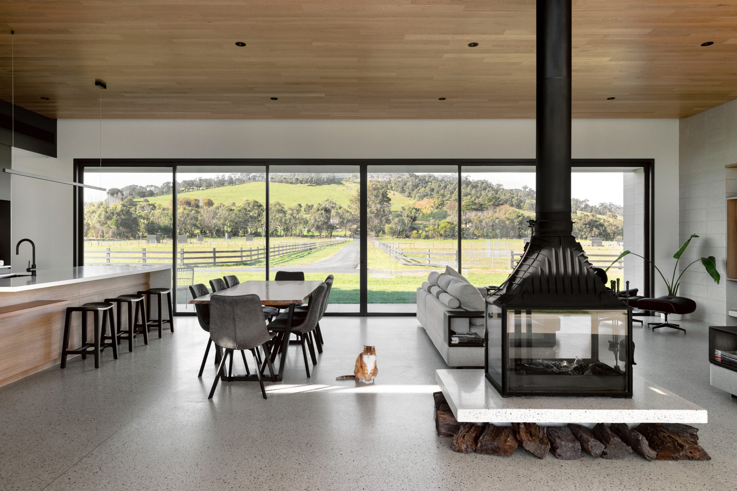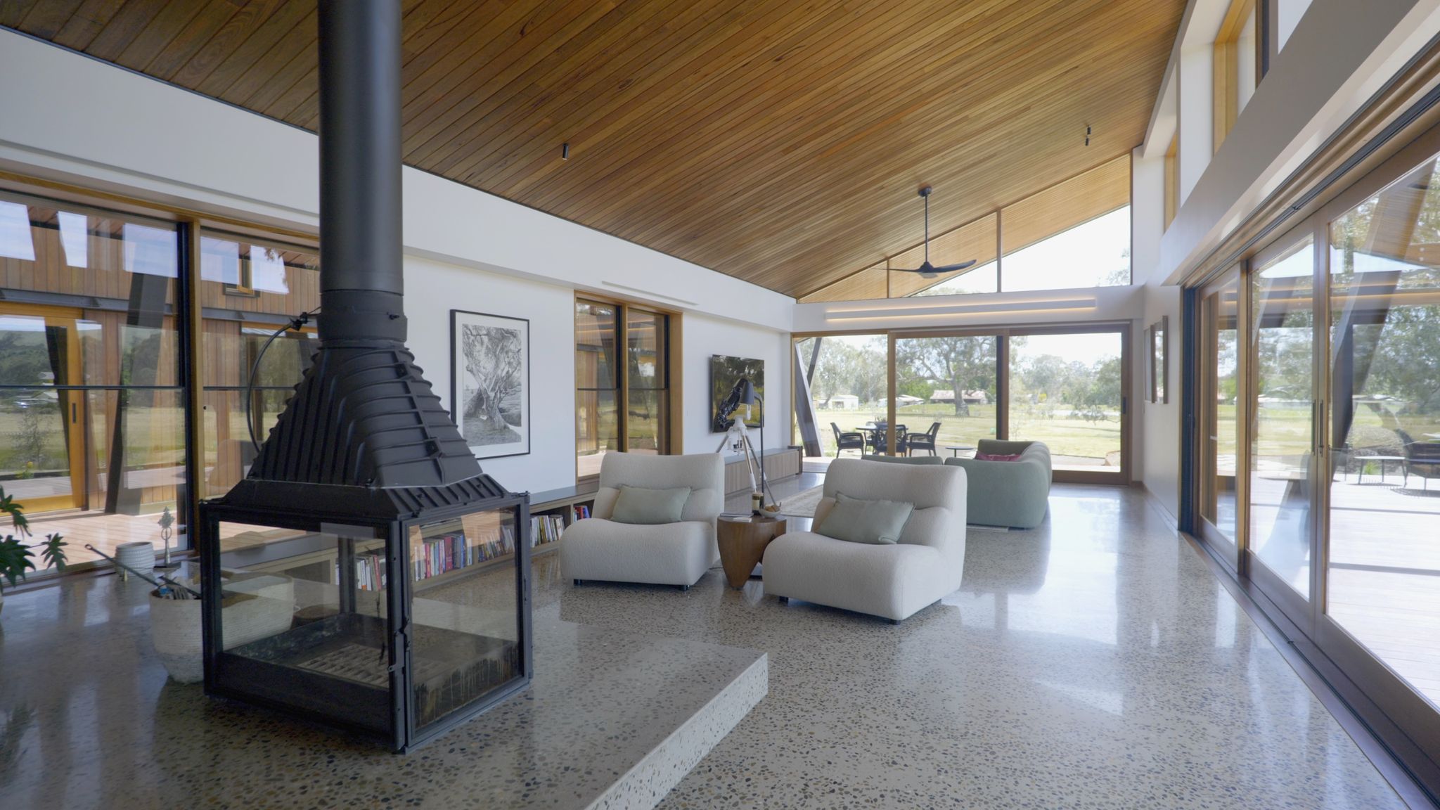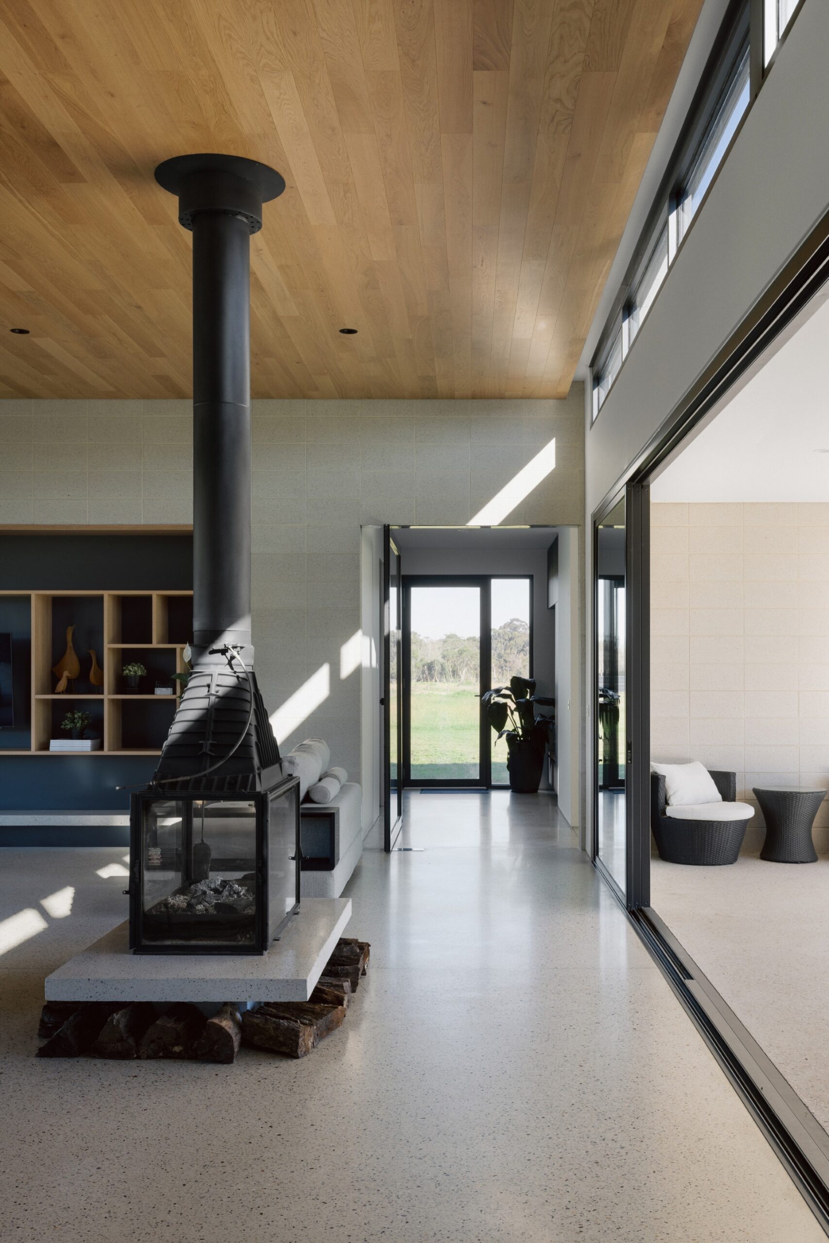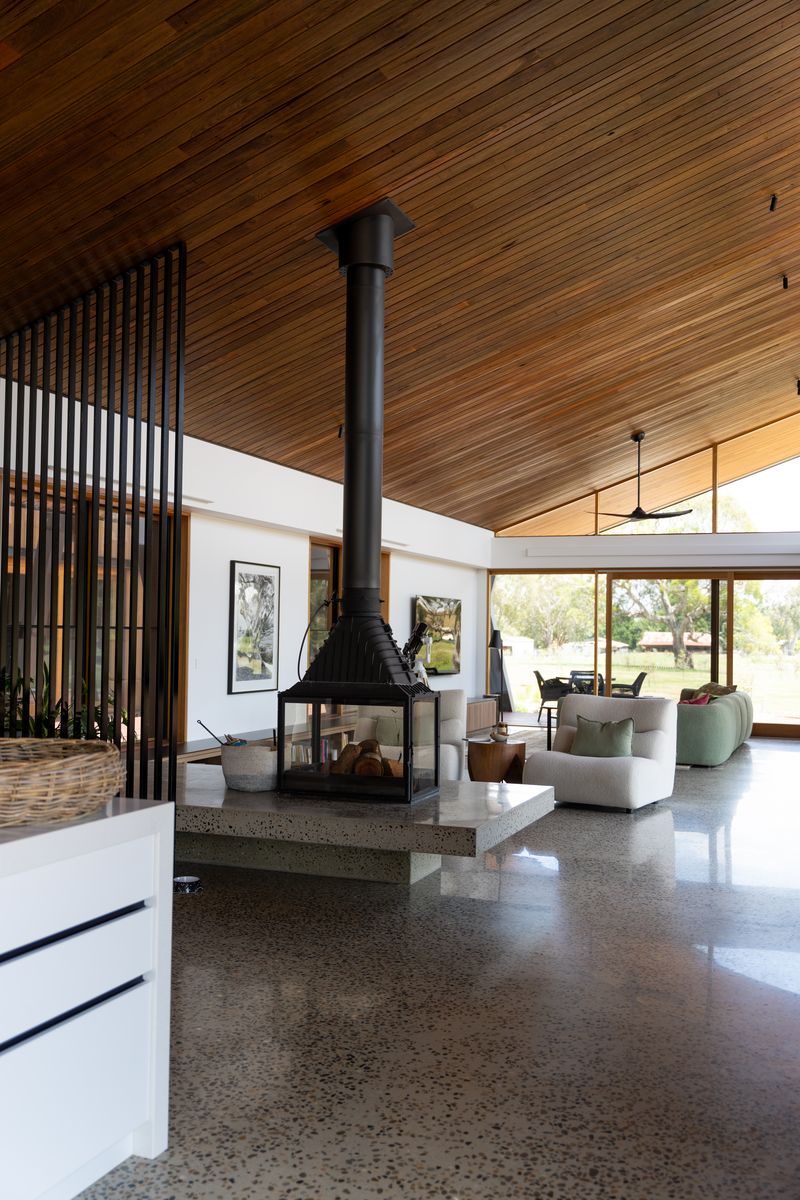 – Four sided wood fireplace design
